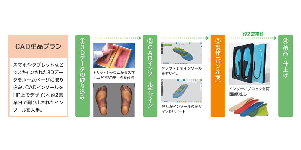 CADインソールをクラウド上でデザイン。ミリングマシンまたは3Dプリンターでインソール作成