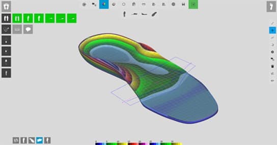 オンラインのCAD設計ソフトウェアは、どんなタイプの足装具を設計するにも使いやすく強力なツールです。EVA、硬質ポリプロピレン(強力ミリングマシン)のカスタムメイドインソールおよびモールド(真空成デザインし形)で製造するためのポジ型を設計デザインすることが可能です。